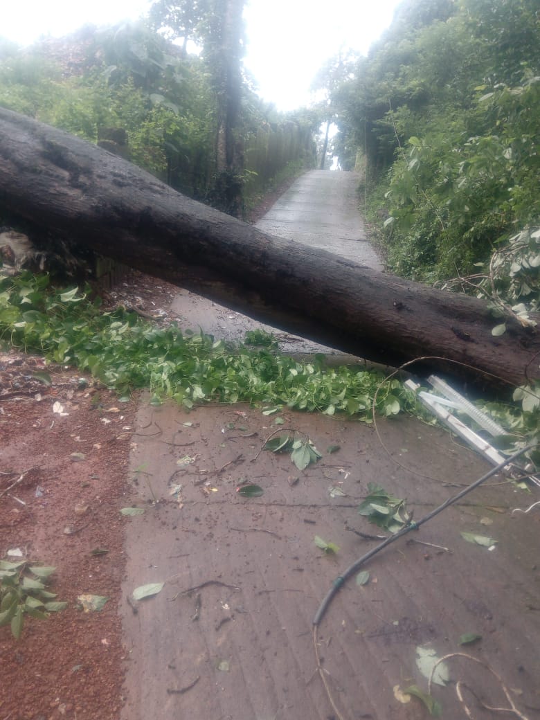 ಬಂದಿದೆ. ಅಲ್ಲದೆ ವಿದ್ಯುತ್ ಕಂಬಗಳು ತುಂಡಾಗಿ ವ್ಯತ್ಯಯ ಉಂಟಾಗಿದೆ.