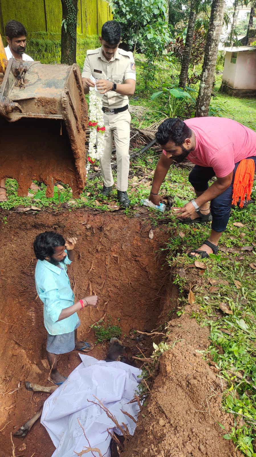 ಇಂದು ಸುಬ್ರಹ್ಮಣ್ಯ ಪೊಲೀಸ್ ಠಾಣೆ ಹಿಂಬದಿ ಸಾವನಪ್ಪಿದ ಗೋವನ್ನು ಶ್ರೀ ಸಂಪುಟ ನರಸಿಂಹ ಸ್ವಾಮಿ ಶ್ರೀ ಸುಬ್ರಹ್ಮಣ್ಯ ಮಠದ ಜೇಸಿಬಿ ಯಂತ್ರದ ಸಹಾಯದಿಂದ ಹೊಂಡವನ್ನು ತೋಡಿ ಸುಬ್ರಹ್ಮಣ್ಯ ಪೊಲೀಸ್ ಠಾಣಾಧಿಕಾರಿ ಮಂಜುನಾಥ್ ಅವರ ಮಾರ್ಗದರ್ಶನದಲ್ಲಿ ಸಿಬಂಧಿಗಳು ಹಾಗೂ ಸ್ಥಳೀಯರ ಸಹಕಾರದಲ್ಲಿ ಧಾರ್ಮಿಕ ವಿಧಿ ವಿಧಾನದ ಮೂಲಕ ಪಂಚಭೂತಗಳಲ್ಲಿ ಲೀನ ಮಾಡಿದರು.