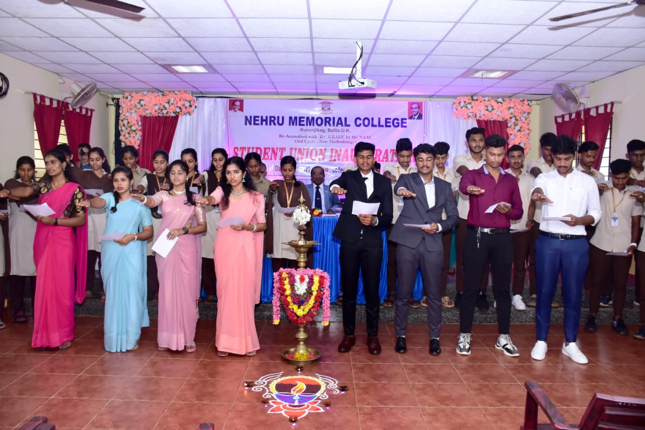 ಕಾಲೇಜಿನ ಮುಖ್ಯ ಸಭಾಭವನದಲ್ಲಿ ನಡೆದ ಈ ಕಾರ್ಯಕ್ರಮದ ಅಧ್ಯಕ್ಷತೆಯನ್ನು ಅಕಾಡೆಮಿ ಆಫ್ ಲಿಬರಲ್ ಎಜುಕೇಶನ್ ಇದರ ಅಧ್ಯಕ್ಷ ಡಾ. ಕೆ.ವಿ ಚಿದಾನಂದ ಇವರು ವಹಿಸಿ ವಿದ್ಯಾರ್ಥಿ ಸಂಘದ ನೂತನ ಪದಾಧಿಕಾರಿಗಳಿಗೆ ಶುಭಹಾರೈಸಿದರು. ಕಾಲೇಜಿನ ವಿದ್ಯಾರ್ಥಿ ಕ್ಷೇಮ ಪಾಲನಾಧಿಕಾರಿ ಶ್ರೀಮತಿ ರತ್ನಾವತಿ ಡಿ. ವಿದ್ಯಾರ್ಥಿ ಸಂಘದ ಪದಾಧಿಕಾರಿಗಳಿಗೆ ಪ್ರಮಾಣ ವಚನ ಬೋಧಿಸಿದರು. ಹಿರಿಯ ವಿದ್ಯಾರ್ಥಿ ಸಂಘದ ಪ್ರಧಾನ ಕಾರ್ಯದರ್ಶಿ ಕೆ.ಟಿ ವಿಶ್ವನಾಥ್ ಮಾತನಾಡಿ ಉತ್ತಮ ನಾಯಕನಾಗಲು ಹಣದ ಅವಶ್ಯಕತೆಯಿಲ್ಲ, ಗುಣ ಅವಶ್ಯ ಎಂದರು. ಹಿರಿಯ ವಿದ್ಯಾರ್ಥಿ ಸಂಘದ ವತಿಯಿಂದ ನೀಡಿರುವ ವಿದ್ಯಾರ್ಥಿ ವೇತನ ವಿತರಿಸಲಾಯಿತು.