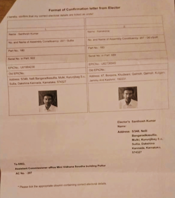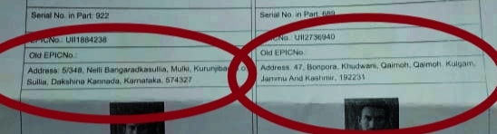 ಸುಳ್ಯದ ವ್ಯಕ್ತಿಯ ಹೆಸರಲ್ಲಿ ಜಮ್ಮು ಕಾಶ್ಮೀರದಲ್ಲಿ ಮತ್ತೊಂದು ಓಟರ್ ಐ.ಡಿ ಪತ್ತೆ..!ಇಲ್ಲೂ ಅಡಗಿದೆಯಾ ಭಯೋತ್ಪಾದಕರ ಸಂಚು…!?