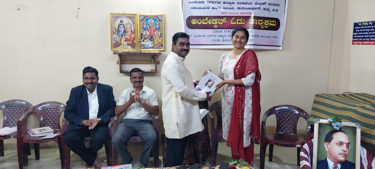 ಕರ್ನಾಟಕ ಸರ್ಕಾರ ಕನ್ನಡ ಮತ್ತು ಸಂಸ್ಕೃತಿ ಇಲಾಖೆ ದಕ್ಷಿಣ ಕನ್ನಡ ಜಿಲ್ಲೆ, ಸ್ವರ ಮಾಧುರ್ಯ ಸಂಗೀತ ಬಳಗ ಪುತ್ತೂರು ಹಾಗೂ ಹಿಂದುಳಿದ ವರ್ಗಗಳ ಕಲ್ಯಾಣ ಇಲಾಖೆ ಮೆಟ್ರಿಕ್ ನಂತರದ ಬಾಲಕಿಯರ ವಸತಿ ನಿಲಯ ಇದರ ಸಂಯುಕ್ತಾಶ್ರಯದಲ್ಲಿ ‘ಅಂಬೇಡ್ಕರ್ ಓದು’ ಕಾರ್ಯಕ್ರಮ ಜನವರಿ 13 ರಂದು ಸುಳ್ಯದ ಕುರಂಜಿಬಾಗ್ ಬಾಲಕಿಯರ ವಸತಿ ನಿಲಯದ ಸಭಾಂಗಣದಲ್ಲಿ ನಡೆಯಿತು.