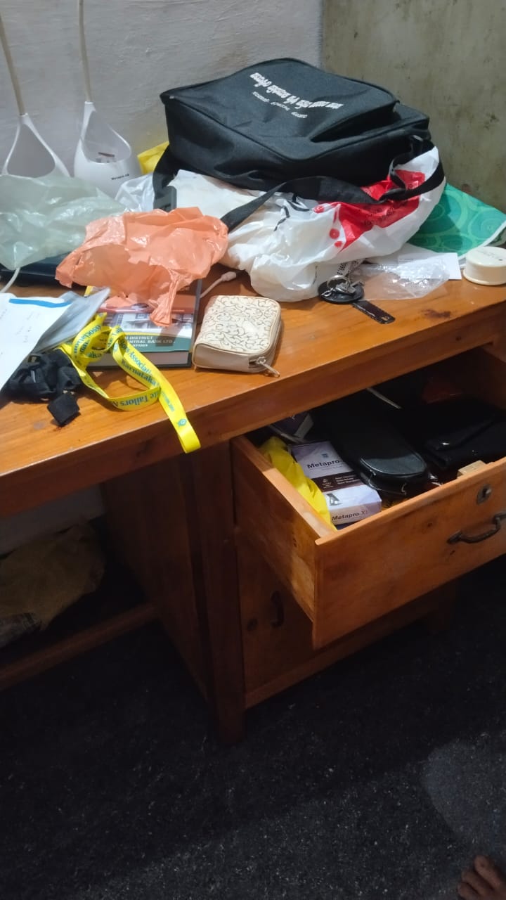 40 ಗ್ರಾಂ ಚಿನ್ನಾಭರಣ ಮತ್ತು 20ಸಾವಿರ ಮೌಲ್ಯದಹಣ , ಉಂಗುರ ಕಳ್ಳ ತನವಾಗಿದೆ. ಸ್ಥಳಕ್ಕೆ ಮಡಿಕೇರಿ ಪೊಲೀಸ್ ಇನ್ಸ್ ಪೆಕ್ಟರ್ ಉಮೇಶ್ ಉಪ್ಪಳಿಕೆ, ಕ್ರೈಂ ಶ್ರೀನಿವಾಸಲು, ಸಿಬ್ಬಂದಿ ರಮೇಶ್, ಬಸವರಾಜ್, ಮಧು, ನಾಗರಾಜ್ ಬೆರಳಚ್ಚು ತಜ್ಞರು , ಶ್ವಾನದಳ ಸ್ಥಳಕ್ಕೆ ಆಗಮಿಸಿ ಪರಿಶೀಲನೆ ನಡೆಸಿ, ಪ್ರಕರಣ ದಾಖಲಿಸಲಾಗಿದೆ.