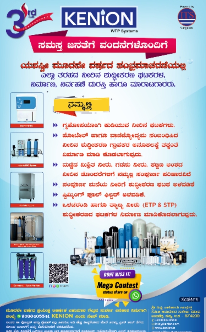 ತಮ್ಮ ಮೂರನೇ ವರ್ಷದ ಸಂಭ್ರಮಕ್ಕೆ ಪ್ರತಿಯೊಬ್ಬರಿಗೂ ಆಕರ್ಷಕ ಬಹುಮಾನ ಗೆಲ್ಲುವ ಸುವರ್ಣ ಅವಕಾಶವನ್ನು KENION ಗ್ರಾಹಕರಿಗಾಗಿ ನೀಡಿದೆ. ಈ ಮೊಬೈಲ್ ಸಂಖ್ಯೆಯನ್ನು 9036405541 KENION ಎಂದು ಸೇವ್ ಮಾಡಿ.ನಂತರ ಸಂಸ್ಥೆಯ ಮೂರನೇ ವರ್ಷ ಸಂಭ್ರಮದ ಪೋಸ್ಟರನ್ನು ಸ್ಟೇಟಸ್ನಲ್ಲಿ ಅಳವಡಿಸಬೇಕು.ಅತೀ ಹೆಚ್ಚು ವೀಕ್ಷಣೆಯಾದ ಮೇಲೆ ಅದನ್ನು ಸ್ಕ್ರೀನ್ ಶಾಟ್ ತೆಗೆದು ಮೇಲಿನ ಸಂಖ್ಯೆಗೆ ತಮ್ಮ ಹೆಸರಿನೊಂದಿಗೆ