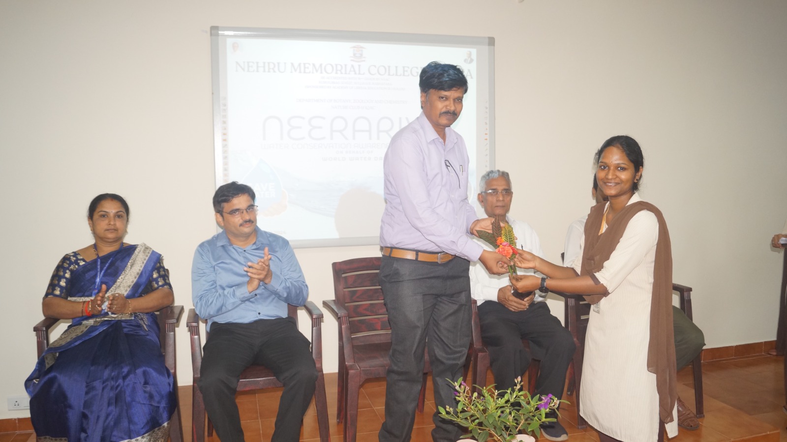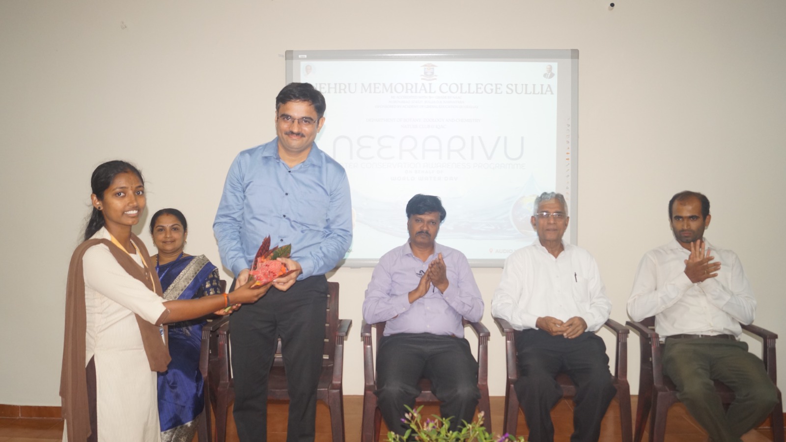 ಕಾಲೇಜಿನ ಶೈಕ್ಷಣಿಕ ಸಲಹೆಗಾರರಾದ ನಿವೃತ್ತ ಪ್ರಾಂಶುಪಾಲ ಪ್ರೊ. ಎಂ ಬಾಲಚಂದ್ರ ಗೌಡರು ನೇಚರ್ ಕ್ಲಬ್ ಕಾರ್ಯದರ್ಶಿ ಕು. ಪವಿತ್ರಾಕ್ಷಿ ಸಾಂಪ್ರದಾಯಿಕವಾಗಿ ನೀರು ನೀಡಿ ಅತಿಥಿಗಳನ್ನು ಸ್ವಾಗತಿಸುವ ರೀತಿಯಲ್ಲಿ ನೀಡಿದ ನೀರನ್ನು ಸ್ವೀಕರಿಸುವ ಮೂಲಕ ಕಾರ್ಯಕ್ರಮವನ್ನು ವಿಶಿಷ್ಟವಾಗಿ ಉದ್ಘಾಟಿಸಿ, ನಮ್ಮ ದೈನಂದಿನ ಬದುಕಿನಲ್ಲಿ ನೀರಿನ ಮಹತ್ವವನ್ನು ತಿಳಿಸಿ ಕಾರ್ಯಕ್ರಮಕ್ಕೆ ಶುಭ ಹಾರೈಸಿದರು.