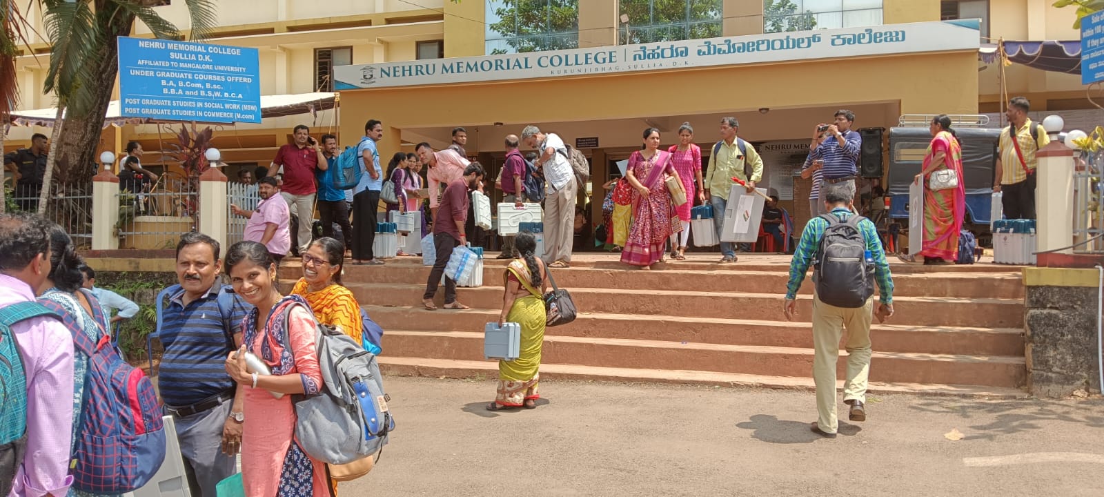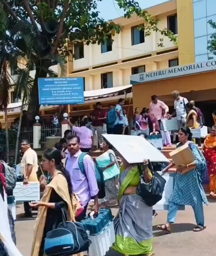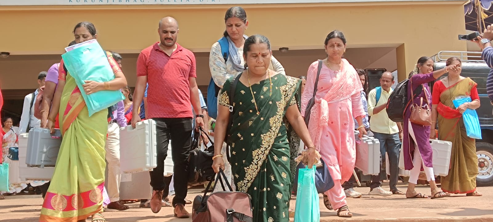 ಲೋಕ ಸಭಾ ಚುನಾವಣೆಯ ಮಸ್ಟರಿಂಗ್ ಕೇಂದ್ರದಿಂದ ವಿವಿದ ಮತಗಟ್ಟೆಗಳಿಗೆ ತೆರಳುವ ಕಾರ್ಯ ಬಿರುಸುಗೊಂಡಿದೆ, ಸುಳ್ಯ ವಿಧಾನ ಸಭಾ ಕ್ಷೇತ್ರದ ಎಲ್ಲ ಮತಗಟ್ಟೆಗೆ EVM ಮೆಷಿನ್ ಗಳೊಂದಿಗೆ ಸಿಬ್ಬಂದಿಗಳು ತೆರಳಿದ್ದಾರೆ. ಸಿಆರ್ ಪಿ ಎಫ್ ನ 100 ಸಿಬ್ಬಂದಿ, ಪೊಲೀಸ್ ಇಲಾಖೆಯಿಂದ 426 ಮಂದಿ ಅಧಿಕಾರಿಗಳು ಹಾಗೂ ಪೊಲೀಸ್ ಸಿಬ್ಬಂದಿ ಕರ್ತವ್ಯಕ್ಕೆ ಹಾಜರಾಗಿದ್ದಾರೆ.
