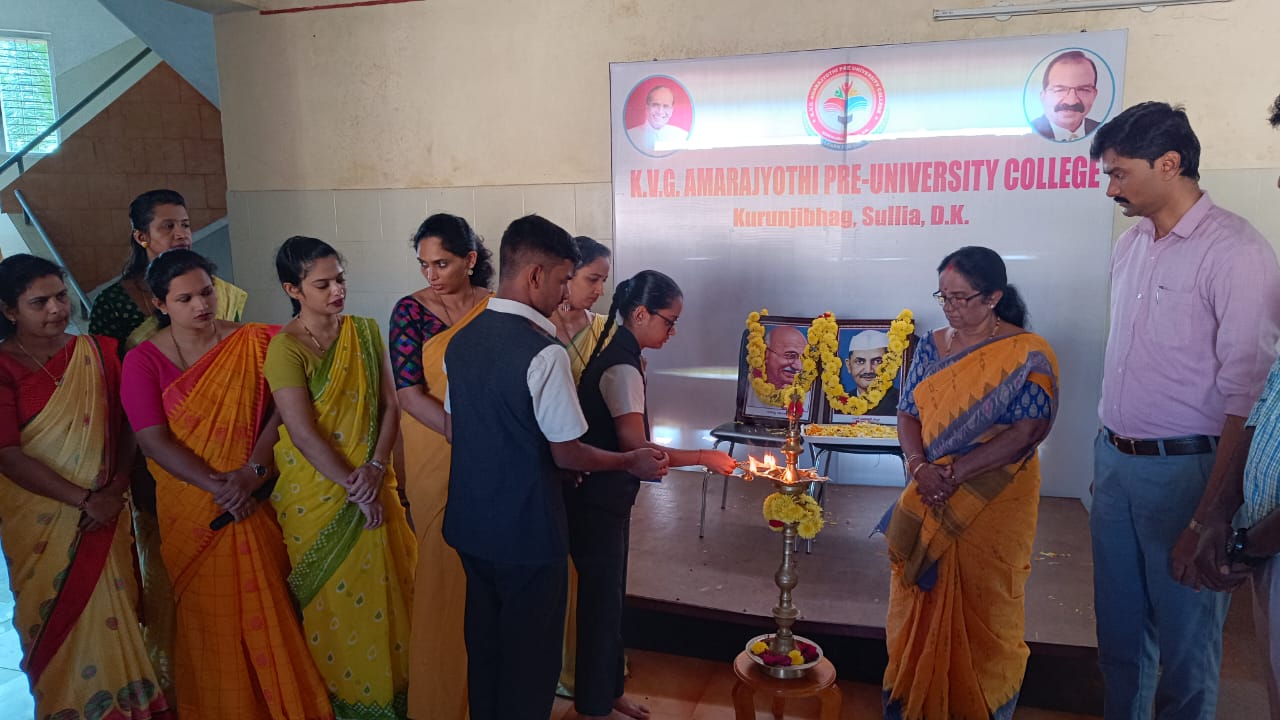 ಕೆವಿಜಿ ಅಮರಜ್ಯೋತಿಯಲ್ಲಿ ಅ. 2 ರಂದು ಗಾಂಧಿ ಜಯಂತಿ ಹಾಗೂ ಲಾಲ್ ಬಹಾದ್ದೂರ್ ಶಾಸ್ತ್ರಿರವರ ಭಾವಚಿತ್ರಕ್ಕೆ ಪುಷ್ಪಾರ್ಚನೆ ಮಾಡಿ ನುಡಿನಮನ ಸಲ್ಲಿಸಲಾಯಿತು.ಕಾರ್ಯಕ್ರಮಕ್ಕೆ ಕಾಲೇಜಿನ ಮ್ಯಾನೇಜಿಂಗ್ ಟ್ರಸ್ಟಿ ಡಾ. ರೇಣುಕಾ ಪ್ರಸಾದ್ ಕೆ ವಿ,ಟ್ರಸ್ಟಿ ಡಾ. ಜ್ಯೋತಿ ಆರ್ ಪ್ರಸಾದ್,ಕಾಲೇಜಿನ ಸಿ ಇ ಒ ಡಾ. ಉಜ್ವಲ್ ಯು ಜೆ ಕಾರ್ಯಕ್ರಮಕ್ಕೆ ಶುಭ ಹಾರೈಸಿದರು.