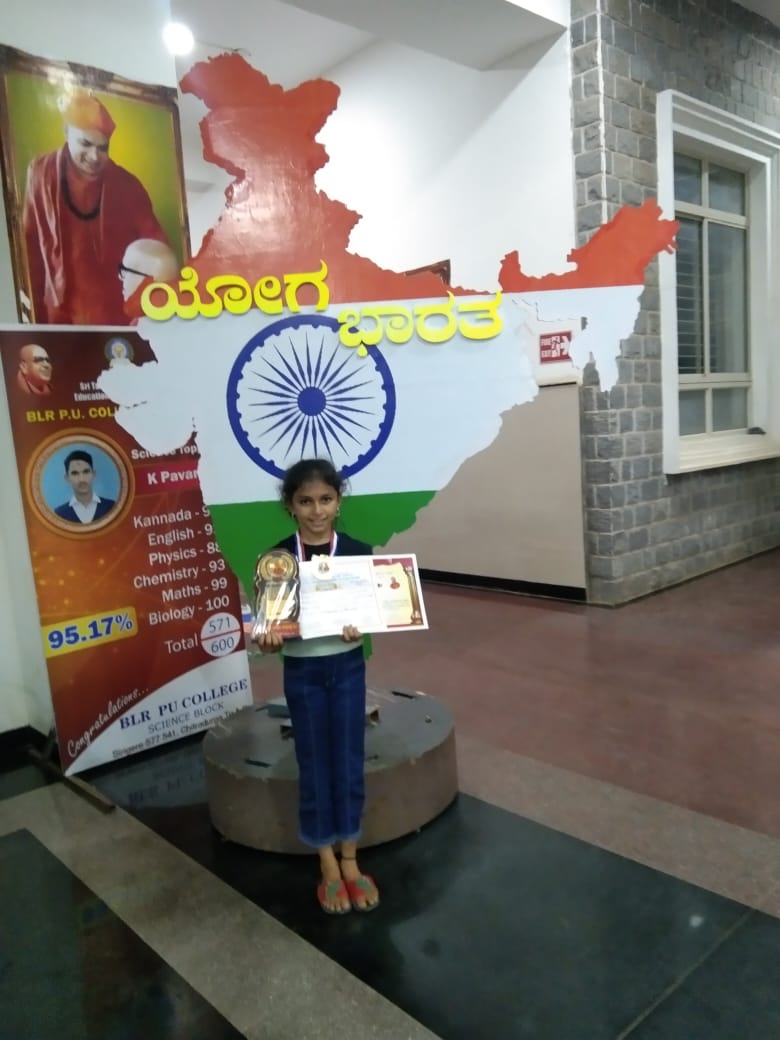 ಅ.10ರಂದು ಚಿತ್ರದುರ್ಗದ ಸಿರಿಗೆರೆಯಲ್ಲಿ ಜರುಗಿದ 32 ಜಿಲ್ಲೆಯ ಯೋಗಾಸನ ಸ್ಪರ್ಧೆಯಲ್ಲಿ ಭಾಗವಹಿಸಿ, ಆಯ್ಕೆಯಾಗಿದ್ದು, ನವೆಂಬರ್ ತಿಂಗಳಲ್ಲಿ ಮಹಾರಾಷ್ಟ್ರದಲ್ಲಿ ನಡೆಯಲಿರುವ ರಾಷ್ಟ್ರಮಟ್ಟದ ಯೋಗಾಸನ ಸ್ಪರ್ಧೆಗೆ ಆಯ್ಕೆಯಾಗಿದ್ದಾರೆ.