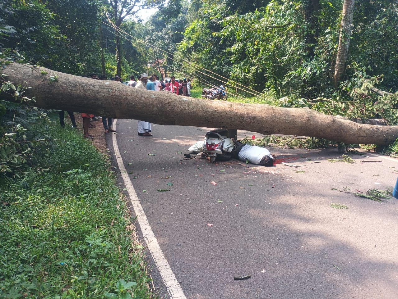 ಎಡಮಂಗಲ ಪುಳಿಕುಕ್ಕು ಎಂಬಲ್ಲಿ ಚಲಿಸುತ್ತಿದ್ದ ಸ್ಕೂಟಿ ಮೇಲೆ ಮರವೊಂದು ಮುರಿದು ಬಿದ್ದು ಸವಾರ ಸಾವನ್ನಪ್ಪಿದ ಘಟನೆ ವರದಿಯಾಗಿದೆ. ಮೃತಪಟ್ಟ ವ್ಯಕ್ತಿಯನ್ನುಎಡಮಂಗಲ ಗ್ರಾಮದ ದೇವಸ್ಯ ಸೀತಾರಾಮ ಗೌಡ ಎಂದು ಗುರುತಿಸಲಾಗಿದೆ.
