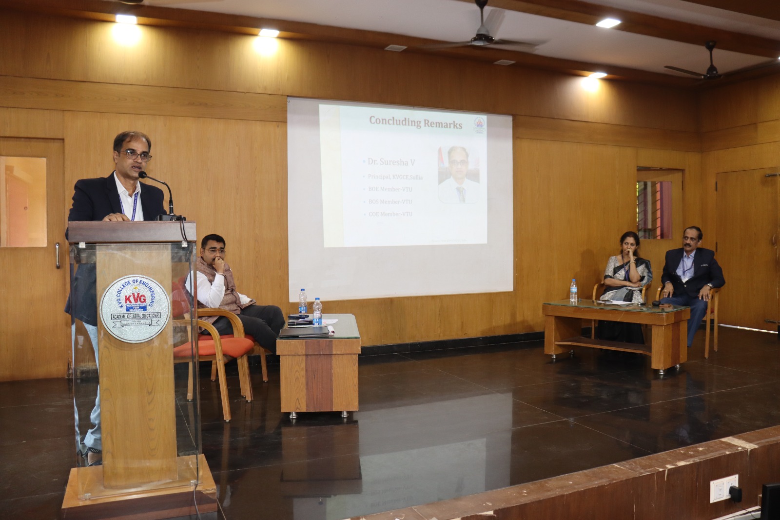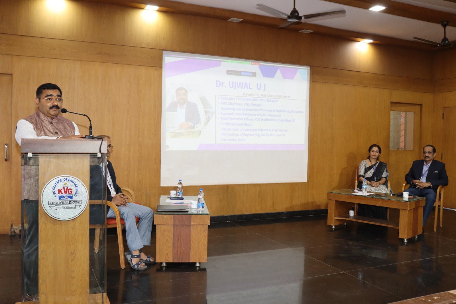 ಡಾ. ಉಜ್ವಲ್ ಯು.ಜೆ (ಮುಖ್ಯ ಕಾರ್ಯನಿರ್ವಹಣಾಧಿಕಾರಿ): ತಮ್ಮ ಭಾಷಣದಲ್ಲಿ ವಿಶ್ವೇಶ್ವರಯ್ಯ ತಾಂತ್ರಿಕ ವಿಶ್ವವಿದ್ಯಾಲಯ (VTU) ವಿದ್ಯಾರ್ಥಿಗಳಿಗೆ ನೀಡುವ ಅನೇಕ ಅವಕಾಶಗಳು ಹಾಗೂ ಕೆ.ವಿ.ಜಿ. ಇಂಜಿನಿಯರಿಂಗ್ ಕಾಲೇಜಿನಲ್ಲಿ ಎಲ್ಲಾ ಸಂಪನ್ಮೂಲಗಳ ಮೂಲಕ ವಿದ್ಯಾರ್ಥಿಗಳನ್ನು ಬೆಳೆಸುವಲ್ಲಿ ಮಾಡುತ್ತಿರುವ ಶ್ರಮವನ್ನು ವಿವರಿಸಿದರು.