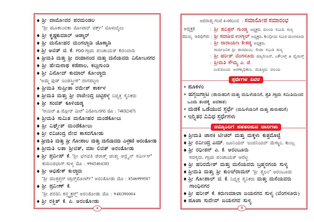 ಮಂಗಳೂರು ನಗರಾಭಿವೃದ್ದಿ ಪ್ರಾಧಿಕಾರ (ಮೂಡಾ )ಅಧ್ಯಕ್ಷರಾದ ಶ್ರೀ ಸದಾಶಿವ ಉಳ್ಳಾಲ್, ಸಾರ್ವಜನಿಕ ಶ್ರೀ ಶಾರದಾಂಬ ಸೇವಾ ಸಮಿತಿ ಸುಳ್ಯ ಇದರ ಅಧ್ಯಕ್ಷರಾದ ಶ್ರೀ ನಾರಾಯಣ ಕೇಕಡ್ಕ ಬೆಂಗಳೂರಿನಲ್ಲಿ ಅಕೌಂಟ್ಸ್ &ಫೈನಾನ್ಸ್ ಮ್ಯಾನೇಜರ್ ಆಗಿರುವ ಶ್ರೀ ಹರೀಶ್ ಬೆಂಗಳೂರು, ಉಪವಲಯ ಅರಣ್ಯಾಧಿಕಾರಿ ಶ್ರೀಮತಿ ಸೌಮ್ಯ ಎ. ಜೆ ಭಾಗವಹಿಸಲಿದ್ದಾರೆ ಈ ಎಲ್ಲಾ ಕಾರ್ಯಕ್ರಮ ಗಳಲ್ಲಿ ಹೆಚ್ಚಿನ ಸಂಖ್ಯೆಯ ಸಮುದಾಯ ಬಾಂದವರು ಭಾಗವಹಿಸಿ ಯಶಸ್ವೀ ಗೊಳಿಸಬೇಕಾಗಿ ಜಂಟಿ ಸಮಿತಿಯ ಪದಾಧಿಕಾರಿಗಳು ವಿನಂತಿಸಿಕೊಂಡಿರುತ್ತಾರೆ.