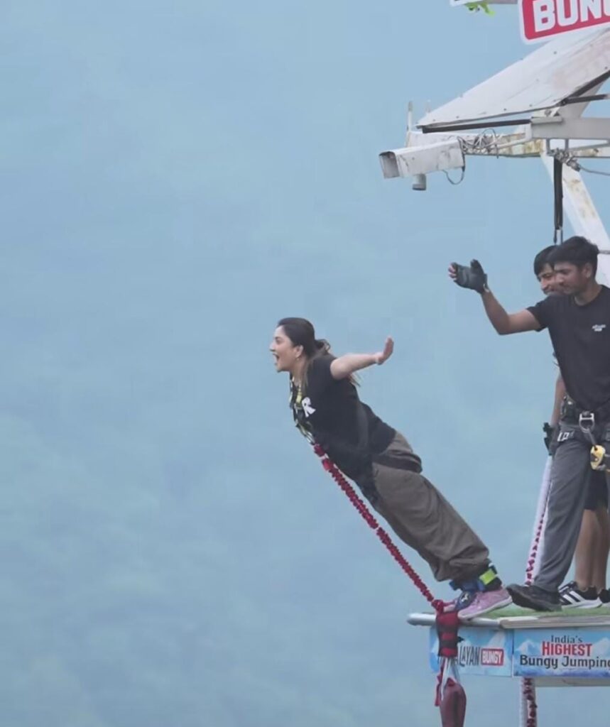 ಸ್ಯಾಂಡಲ್ವುಡ್ ನಟಿ ಕಾರುಣ್ಯಾ ರಾಮ್ ಅವರು ರಿಷಿಕೇಶದಲ್ಲಿ 117 ಮೀಟರ್ (383 ಅಡಿ) ಎತ್ತರದಿಂದ ಬಂಗೀ ಜಂಪ್ ಮಾಡುವ ಮೂಲಕ ತಮ್ಮ ಬಹುದಿನಗಳ ಕನಸನ್ನು ಈಡೇರಿಸಿದ್ದಾರೆ. ಈ ಸಾಹಸಿಕ ಕೃತ್ಯವನ್ನು ತಮ್ಮ ಆಪ್ತ ಗೆಳತಿಯ ಜೊತೆ ದೋ ಧಾಮ್ ಯಾತ್ರೆಯ ನಡುವೆ ನಡೆಸಿದ್ದು, ಅವರು ಈ ಮೂಲಕ ಭಯವನ್ನು ತೊರೆದು ಜೀವನದ ಸವಾಲುಗಳನ್ನು ಸ್ವೀಕರಿಸುವ ತಮ್ಮ ದೃಢತೆಯನ್ನು ಪ್ರತಿಪಾದಿಸಿದ್ದಾರೆ.