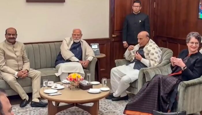 ಸ್ಪೀಕರ್ ಆಯೋಜಿಸಿದ್ದ ಚಹಾಕೂಟದಲ್ಲಿ ಪ್ರಧಾನಿ ಮೋದಿ-ಪ್ರಿಯಾಂಕಾ ಗಾಂಧಿ : ಅಪರೂಪದ ಕ್ಷಣಕ್ಕೆ ಸಾಕ್ಷಿಯಾದ ಚಹಾಕೂಟ