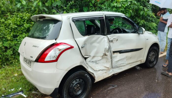 ಪಾಲಡ್ಕದಲ್ಲಿ ರಸ್ತೆ ಬದಿ ನಿಂತಿದ್ದ ಕಾರಿಗೆ ಶಿಪ್ಟ್ ಕಾರು ಡಿಕ್ಕಿ: ಸವಾರರು ಪಾರು.