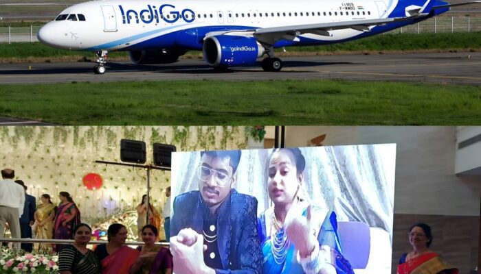 ಕೊನೇ ಕ್ಷಣದಲ್ಲಿ ರದ್ದಾದ ಇಂಡಿಗೋ ವಿಮಾನ: ವಿಡಿಯೋ ಕಾನ್ಫರೆನ್ಸ್ ಮೂಲಕ ಆರತಕ್ಷತೆಯಲ್ಲಿ ಭಾಗಿಯಾದ ನವ ಜೋಡಿ!